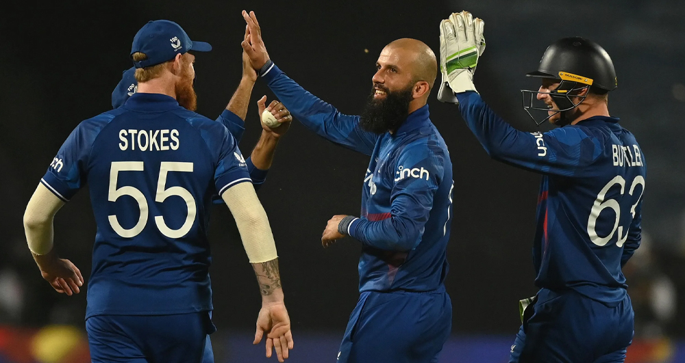 इंग्ल्याण्डका लागि मोइन अली र आदिल रसिदले ३–३ विकेट लिए भने डेभिड विलीले दुई तथा क्रिस वोक्सले १ विकेट लिए । यसअघि बेन स्टोक्सको शतकको मद्दतले इंग्ल्याण्डले निर्धारित ५० ओभरमा ९ विकेटको क्षतिमा ३३९ रन बनाएको थियो ।