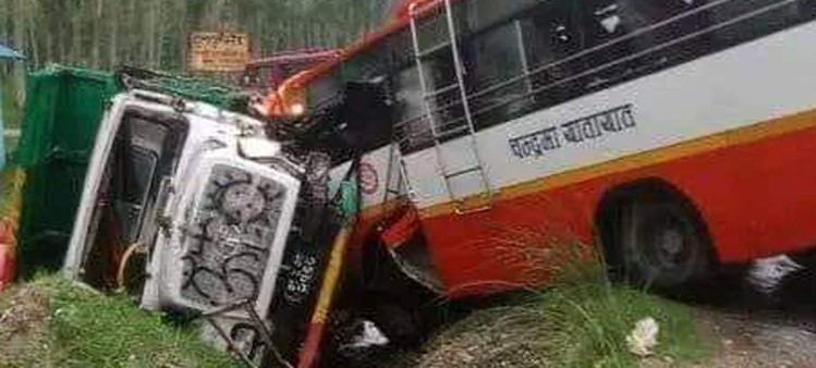 झापामा बिहानै टिपर र बस ठोक्किँदा २१ जना घाइते