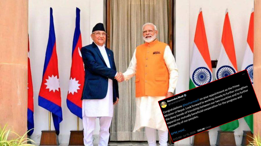 सोमबार सामाजिक सञ्जाल ‘एक्स’ मा मोदीले ओलीको कार्यकालमा दुई देशबीचको सम्बन्ध अझ प्रगाढ हुने विश्वास व्यक्त गरेका छन् ।