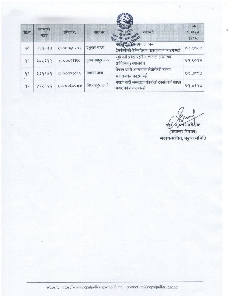 बढुवाका सिफारिस सूची प्रहरी नियमावली, २०७१ (संशोधन सहित)को नियम २७ को उप-नियम (४) अनुसार सम्बन्धित सबैको जानकारीका लागि प्रकाशित गरिएको प्रहरी प्रधान कार्यालयले जनाएको छ ।