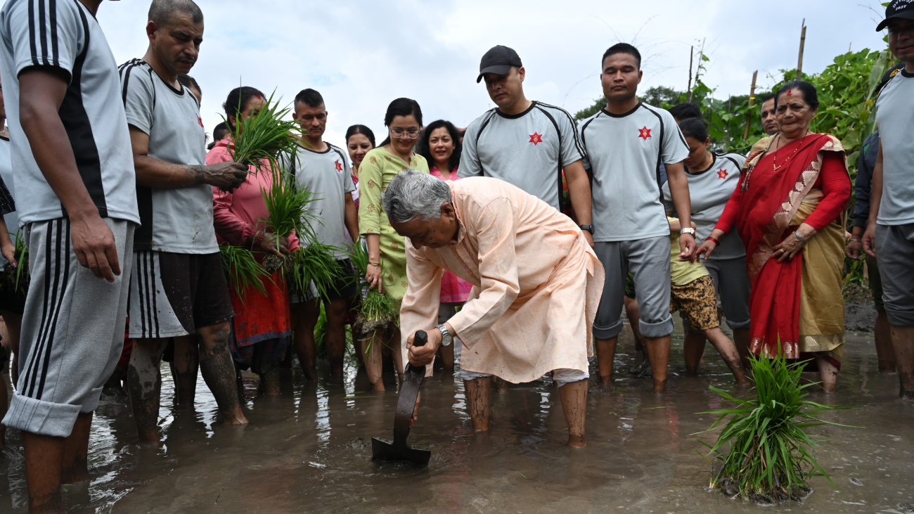 धान दिवसमा राष्ट्रपति पौडेलको रोपाइँ, कृषकलाई सम्मान गर्न आग्रह