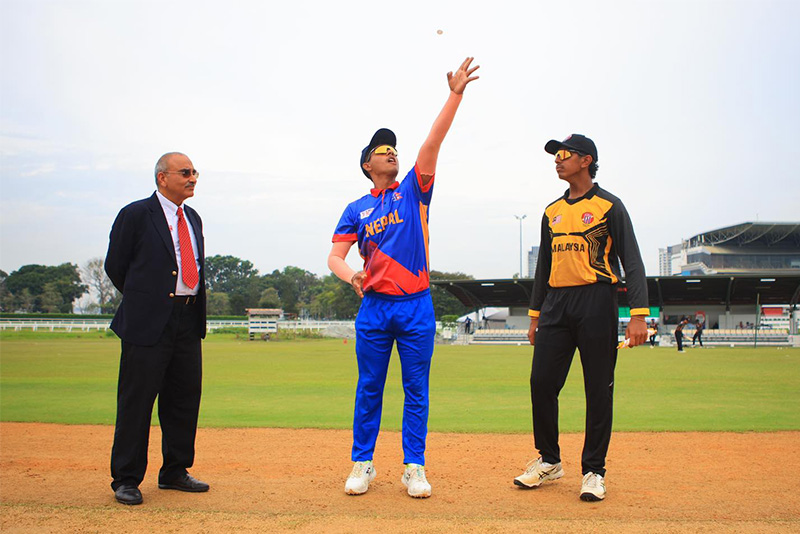 सेलाङ्गोर टर्फ क्लबको मैदानमा नेपालका कप्तान विपिनप्रसाद शर्माले टस जितेर बलिङ रोजेका हुन्। खेल पौने ८ बजे सुरु हुने छ।