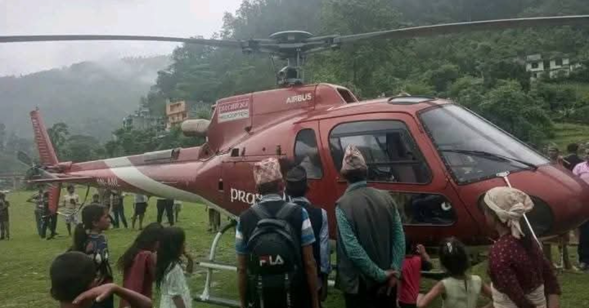 हेलिकप्टरमा टाउकोमा चोट लागेको एकजना बिरामी, चालक दलका दुई सदस्यसहित कुल पाँच जना सवार थिए।