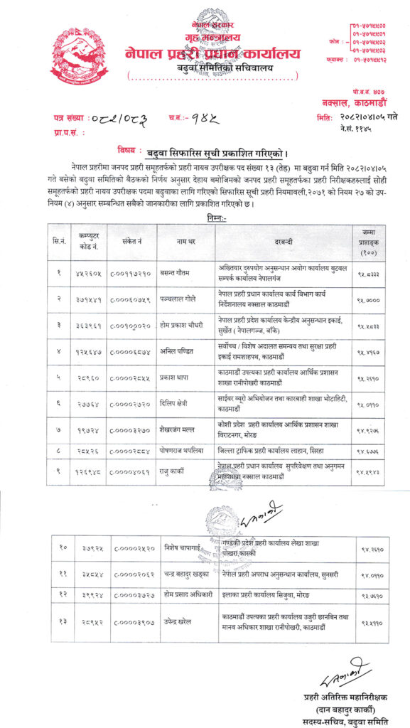 यी १३ इन्स्पेक्टर भए डिएसपी बढुवाका लागि सिफारिस (सूचीसहित)