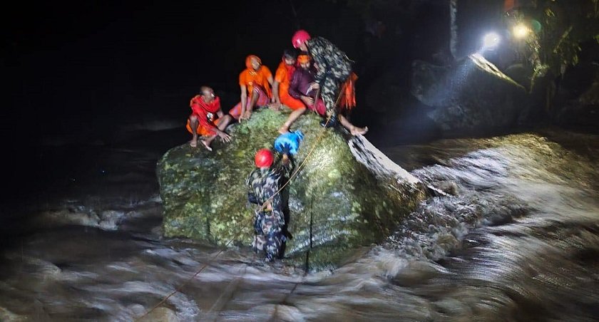 उनीहरू नुहाउने क्रममा खोलाको बहाव एक्कासि बढेपछि बीचमा फसेका थिए।