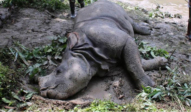 धापमा भासिएर गैँडाको मृत्यु
