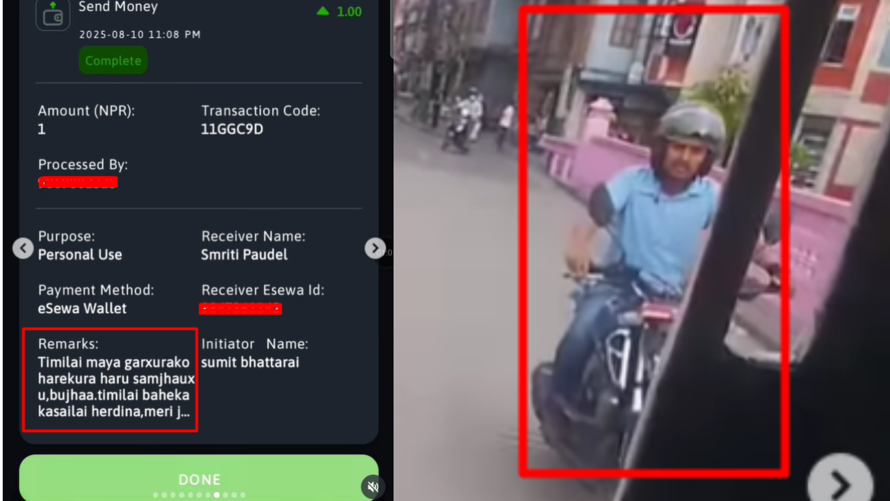 सबै ठाउँबाट ब्लक भएपछि भट्टराईले स्मृतिलाई ई–सेवामार्फत १–१ रुपैयाँ पठाउँदै “तिमीलाई माया गर्छु”, “तिमी बाहेक कसैलाई हेर्दिनँ”, जस्ता सन्देश पठाएको प्रमाण सार्वजनिक भएपछि डिजिटल भुक्तानी प्रणालीको दुरुपयोगबारे गम्भीर प्रश्न उठेको छ।