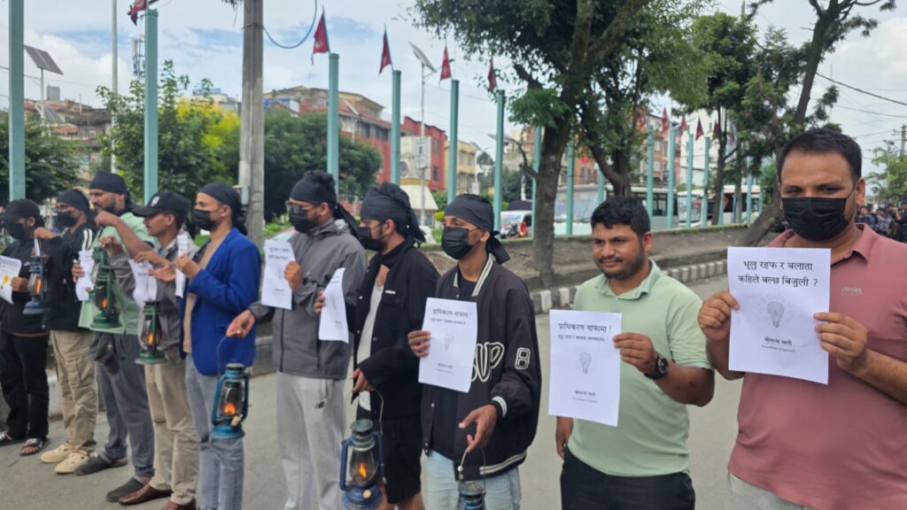 काठमाडाैं- बोलन्या थलीले काठमाडौंको माइतीघर मण्डलामा लालटिन आन्दोलन गरेको छ। अछामका करिब ४ हजार घरपरिवार अझै पनि अन्धकारमा बस्नुपर्ने बाध्यता भएकाले त्यसकाे विराेधमा शुक्रबार लालटिन आन्दोलन आयोजना गरेको थलीका संयोजक यादव जोशीले बताए ।
