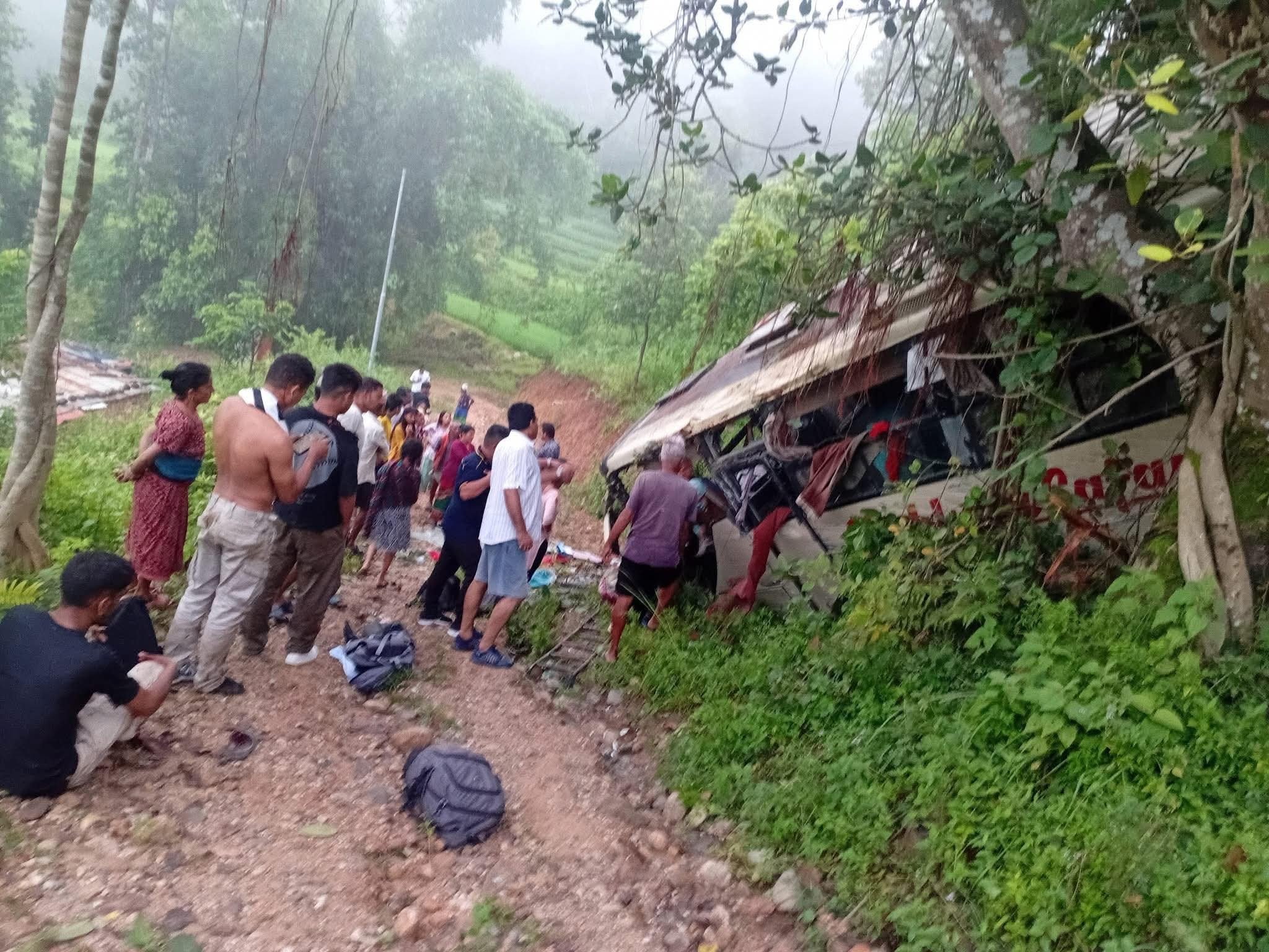 गण्डकी प्रदेश ००६ ख ४१३१ नम्बरको बस भीमसेनथापा गाउँपालिका-३ स्थित तान्द्राङमा मंगलबार बिहान दुर्घटना भएको हो ।