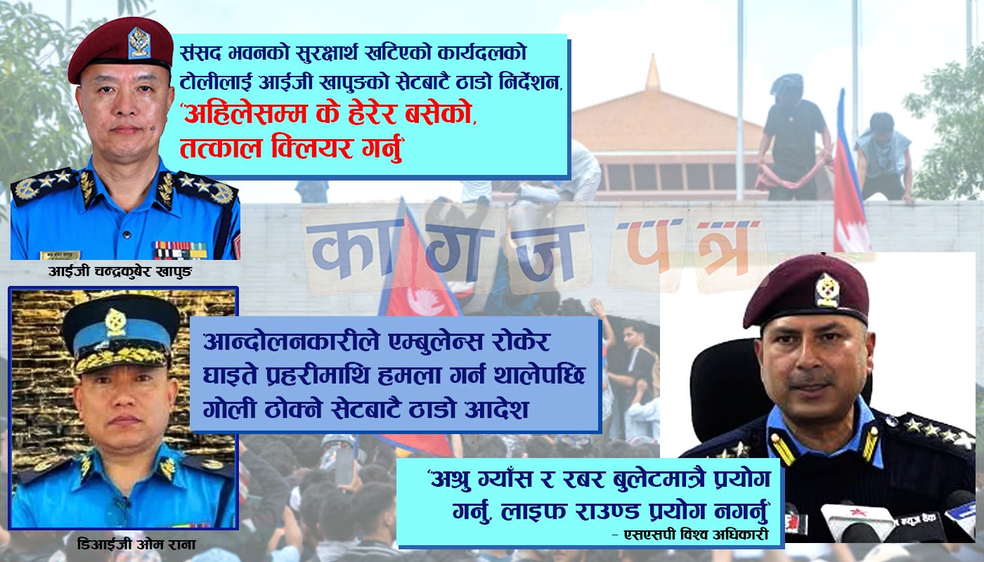 उपत्यकाका धेरै प्रहरी कार्यालयहरू जलिरहँदा काठमाडौं प्रहरी परिसर भने सुरक्षित रह्यो । आन्दोलनको पहिलो दिन अर्थात् भदौ २३ गते प्रदर्शनकारी उग्र बनेपछि संसद भवनमा छिर्ने प्रयास गर्दा प्रहरीले गोली चलाएको थियो । संसद भवनको सुरक्षाको जिम्मेवारी सिधै प्रहरी हेडक्वार्टरले हेर्ने गर्छ । जसअनुसार त्यहाँ खटिने सुरक्षाकर्मीलाई उसले नै सञ्चालन गर्छन् । यसको अर्थ संसदको कार्यदल स्वय्म प्रहरी महानिरीक्षक चन्द्र कुबेर खापुङ्गले कमाण्ड गरिरहेका थिए ।