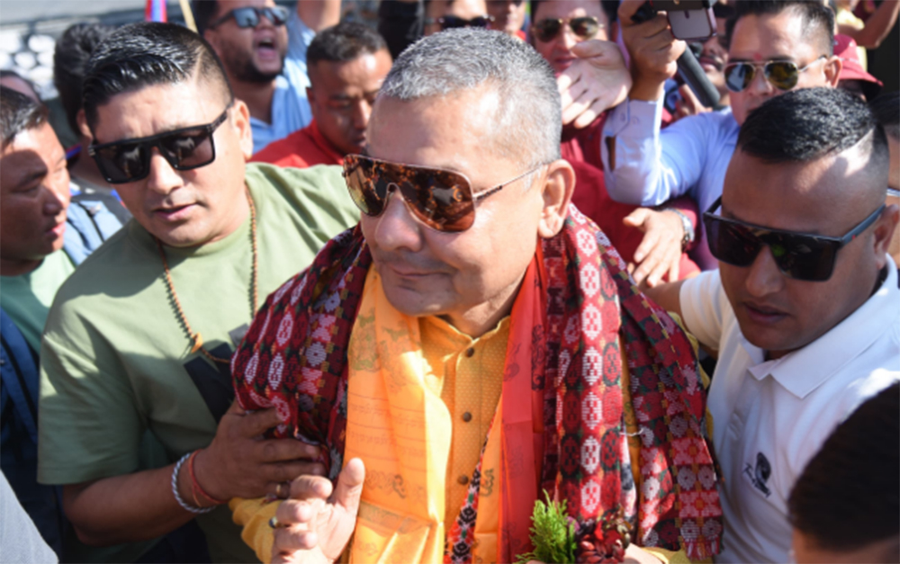 सोमबार त्रिभुवन अन्तर्राष्ट्रिय विमानस्थलमा पत्रकारहरूसँग कुरा गर्दै उनले देशमा राजाको आवश्यकता अपरिहार्य रहेको बताए। ‘राजा भनेको सबैलाई जोडेर राख्ने हो,’ उनले भने, ‘धर्म भनेको देशको संविधान जस्तै हो। हामीलाई यस्तो संविधान चाहिँदैन।’ उनले वर्तमान संविधानले देशलाई केही नदिएको आरोप लगाउँदै अब नागरिकहरू पूर्वराजा ज्ञानेन्द्र शाह निवास निर्मल निवास पुग्ने दिन आउँदै गरेको दाबी गरे।