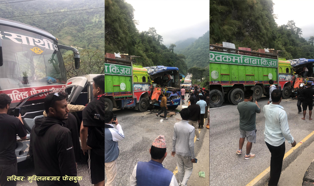चितवन — चितवनको मुग्लिन नारायणगढ सडकखण्डमा बस र ट्रकसहित ७ वटा सवारीसाधन ठोक्किएका छन् ।