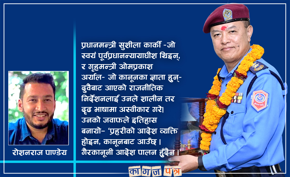 उनको नेतृत्वमा नेपाल प्रहरीले संविधान र कानूनको पक्षमा दृढ उभिने साहस देखायो, र त्यो नै सिंगो राष्ट्रका लागि प्रेरणा बन्यो।