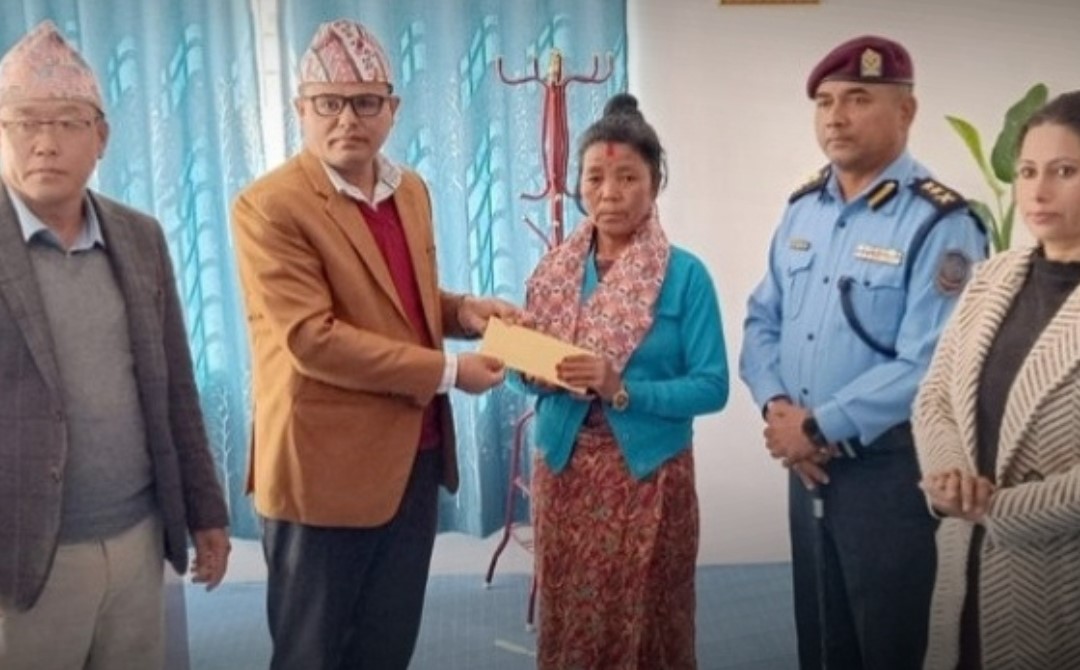 उनलाई सोमबार गृह मन्त्रालयले धनकुटाका प्रमुख जिल्ला अधिकारी विनोदकुमार खड्कामार्फत चौबिसे गाउँपालिकाका अध्यक्ष र जिल्ला प्रहरी कार्यालयका प्रमुखको रोहवरमा जिल्ला प्रशासन कार्यालयमा उक्त रकम हस्तान्तरण गरेको हो ।
