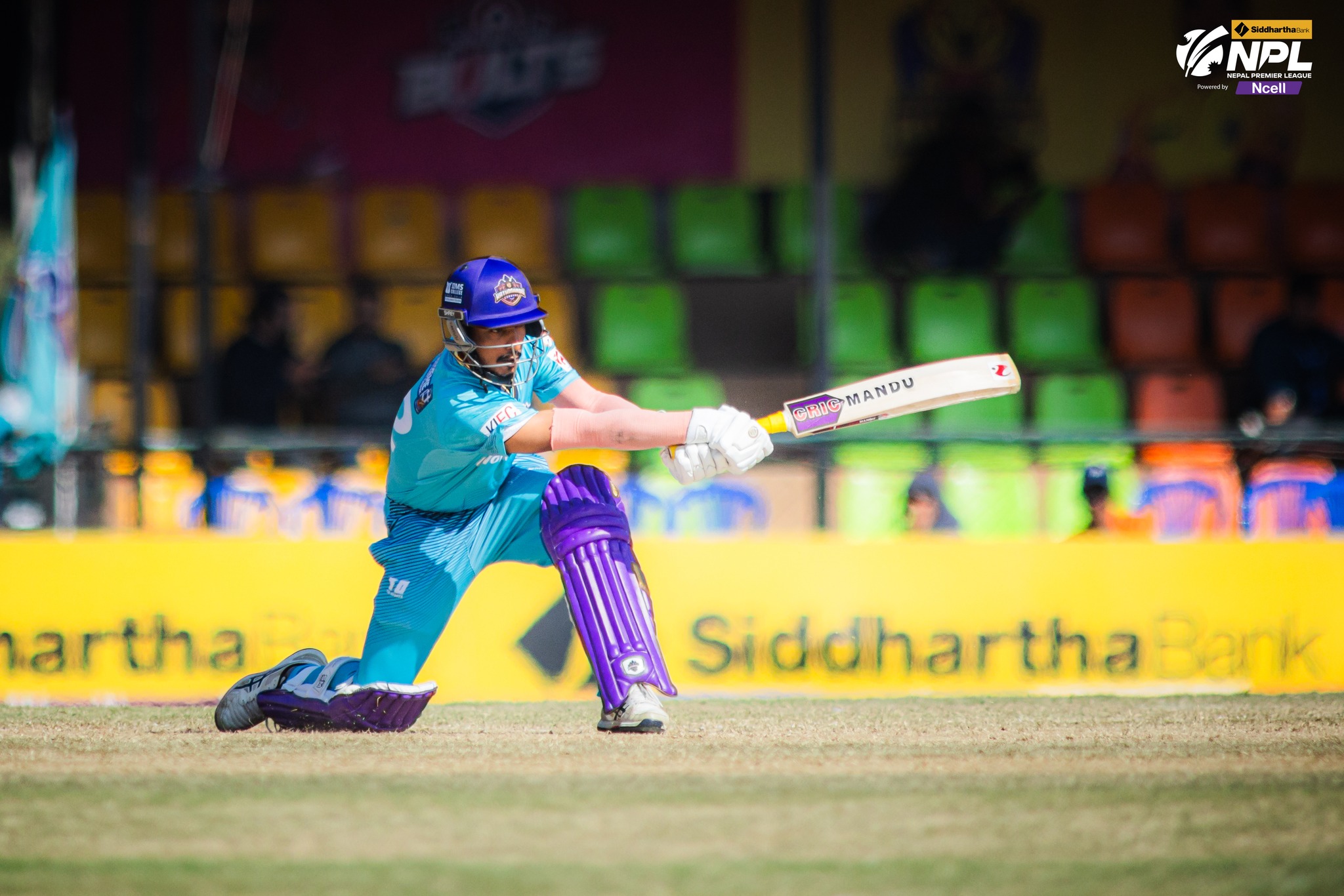 काठमाडौंका लागि जोन सिम्पसनले अर्धशतकीय पारी खेले । उनले २०० भन्दा बढीको स्ट्राइट रेटमा ३ चौका र ५ छक्कासहित ६० रन जोडे । सिम्पसनलाई गतिलो साथ दिएका मिलिन्द कुमारले ३८ रन बनाए । उनीहरूले ९८ रनको साझेदारी गरेका थिए ।