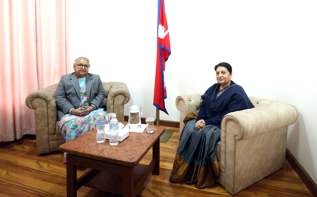 काठमाडौं — प्रधानमन्त्री सुशीला कार्की र पूर्वराष्ट्रपति विद्यादेवी भण्डारीबीच आज प्रधानमन्त्री तथा मन्त्रिपरिषद्को कार्यालयमा भेट भएको छ ।