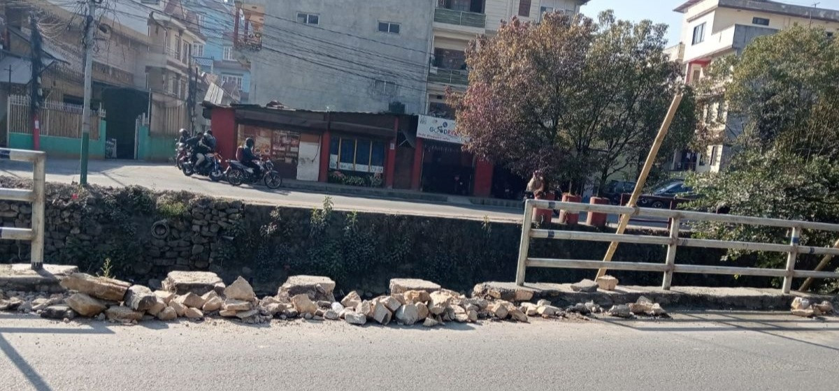 दुर्घटना बढेपछि धोबीखोला किनारमा रेलिङ मर्मत गरिँदै