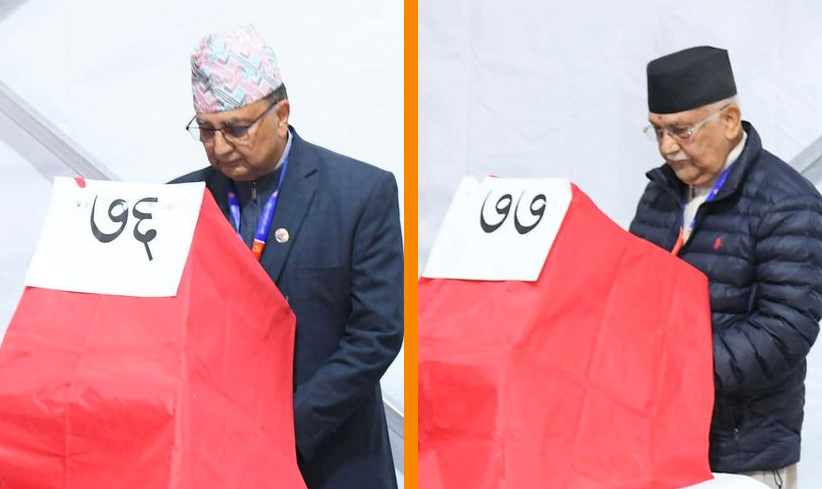 यसअघि, पार्टीको अध्यक्ष पदका प्रत्याशी रहेका केपी शर्मा ओली र ईश्वर पोखरेलले विद्युतीय मेसिनबाट पहिलो मतदान गरेका थिए ।