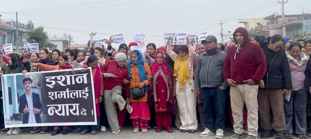 ईशानका हत्यारा पक्राउको माग गर्दै रुद्रपुर प्रहरी कार्यालय घेराउ
