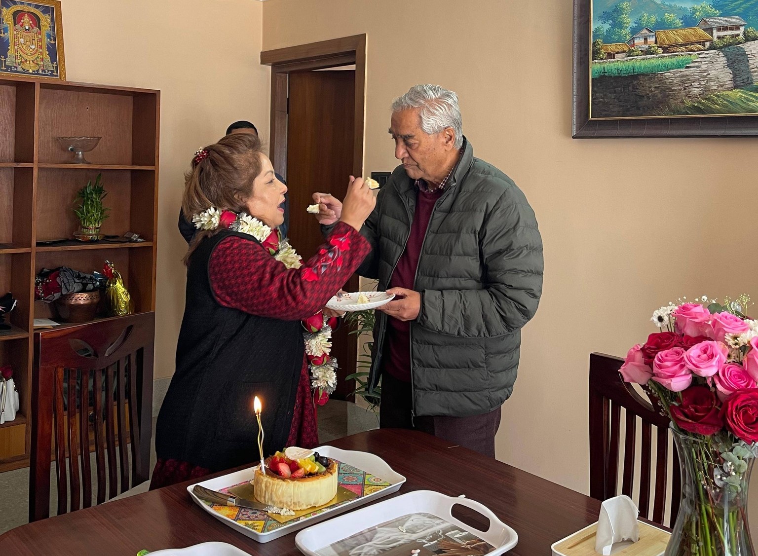 जन्मदिनमा शेरबहादुर र आरजु देउवाबीच केक सेयर