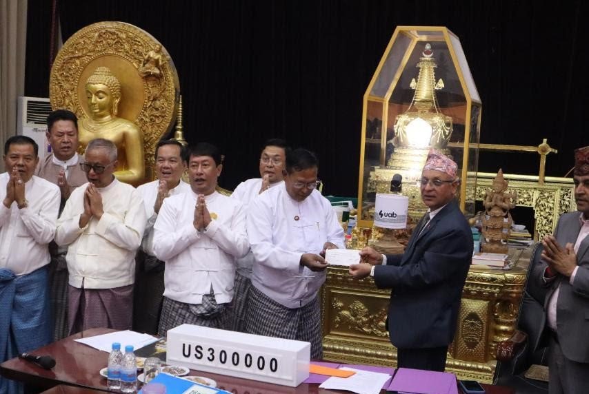 म्यान्मारलाई नेपालले दियो तीन लाख ५० हजार अमेरिकी डलर सहायता