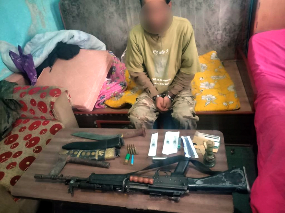 भुम्डोल बस्दै आएका उनीबाट राइफल र एसएलआरको ४ राउण्ड गोली, प्लाष्टिक राउण्ड २ वटा, सट गनमा लाग्ने राउण्ड १ वटा, खुकुरी एक थान तथा सोको दाप २ थान, बन्चरो १ र सिरिन्ज ५ वटा बरामद भएको छ ।