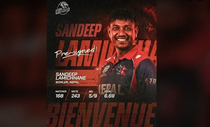 टिमले सामाजिक सञ्जालमा भनेकाे छ, “यस सिजन नयाँ स्पिनरको आगमन भएको छ। टिमको बलिङ पंक्तिलाई बलियो बनाउन सन्दीप लामिछानेलाई टिममा भित्र्याइएको घोषणा गर्दछौँ।”