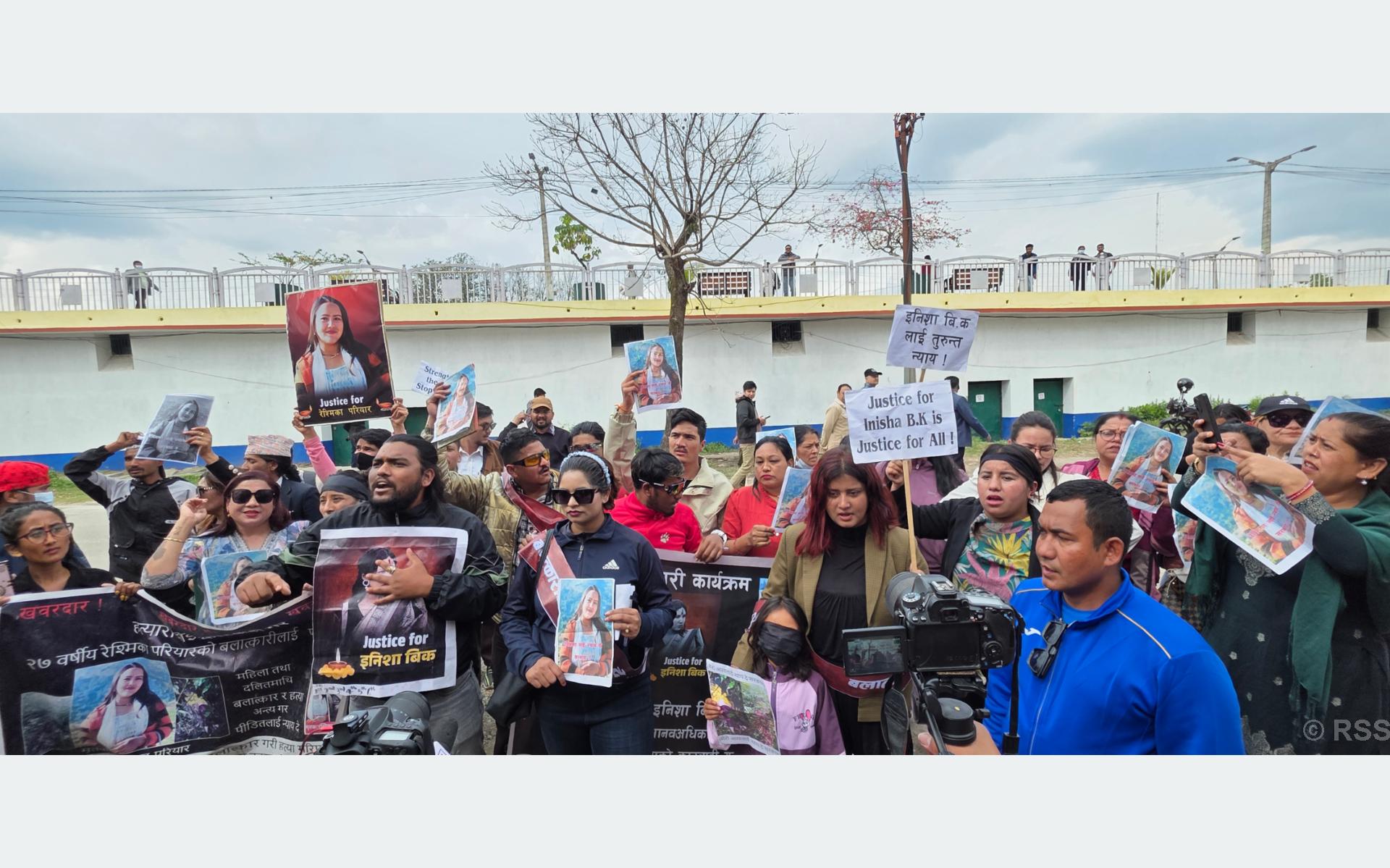 ‘महिला अधिकार सुनिश्चित गर’, ‘महिला हिंसा अन्त्य गर’, ‘महिला आयोग किन चुप ?’, ‘इनिशा विक र रेश्मिका परियारलाई न्याय देऊ’, ‘छोरी चेलीको रक्षा गर’ नाराका साथ पीडित पक्षले महिला आयोग परिसरमा नाराबाजी गरेका हुन् ।