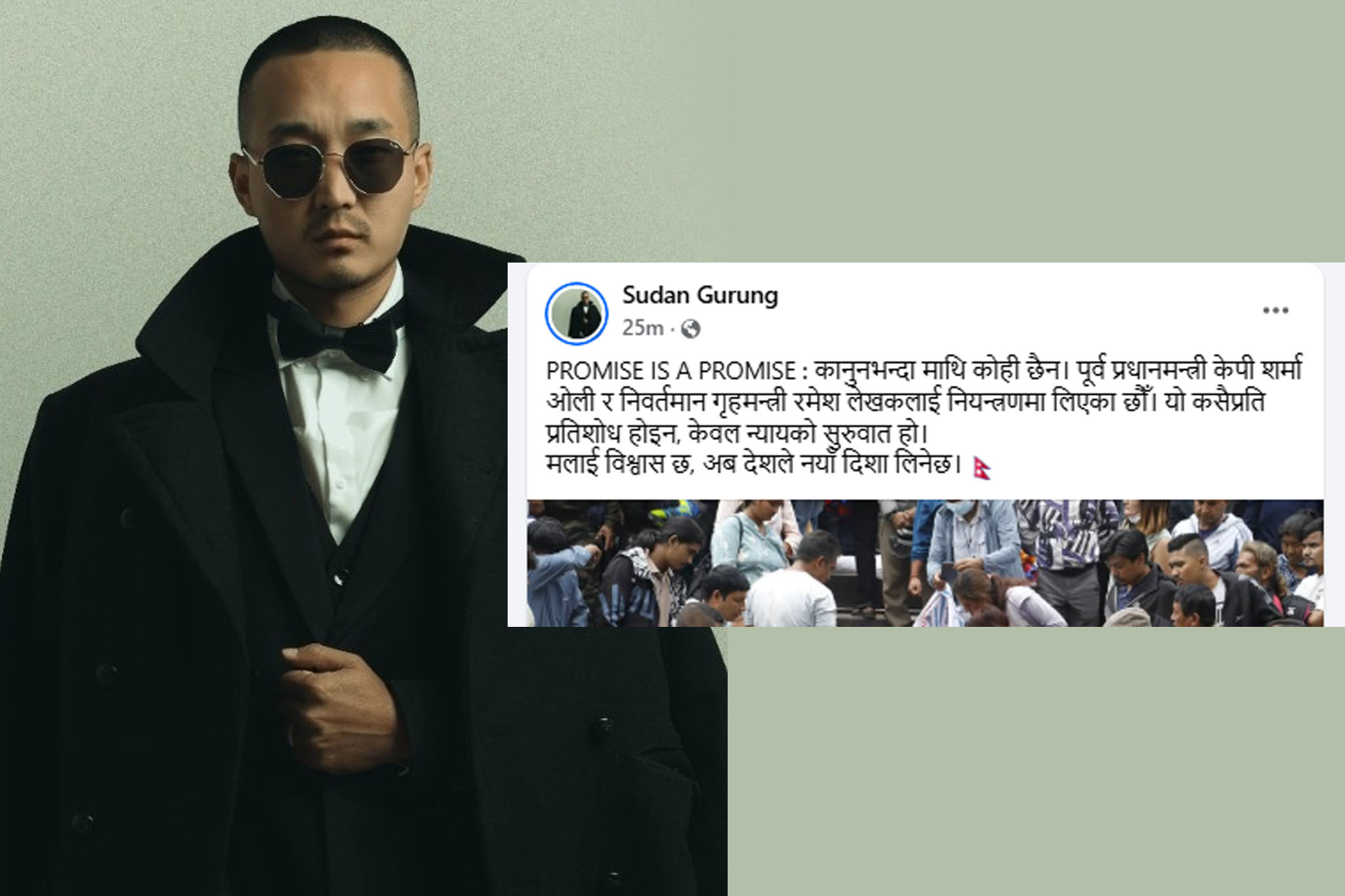 उनले लेखेका छन्, PROMISE IS A PROMISE : कानुनभन्दा माथि कोही छैन। पूर्व प्रधानमन्त्री केपी शर्मा ओली र निवर्तमान गृहमन्त्री रमेश लेखकलाई नियन्त्रणमा लिएका छौँ। यो कसैप्रति प्रतिशोध होइन, केवल न्यायको सुरुवात हो।