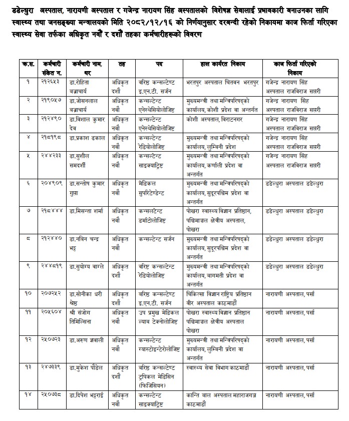 सुगममा काज बसेका विशेषज्ञ चिकित्सक फिर्ता, १४ जनाको सरुवा