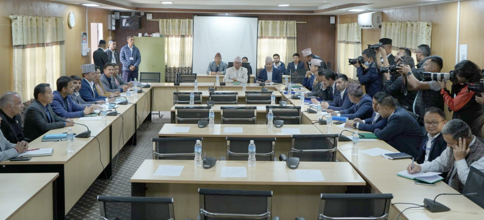 दिउँसो १ बजेका लागि तय गरिएको बैठक एमाले र श्रम संस्कृति पार्टीका सांसदहरू ढिलाइले उपस्थित भएपछि करिब आधा घण्टा ढिलो गरी सुरु भएको हो।