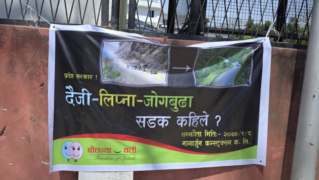 दैजी–लिप्ना–जोगबुढा सडकखण्डको निर्माण कार्य लामो समयदेखि अलपत्र परेको भन्दै ‘बोलन्या थली’ले मुख्यमन्त्री कार्यालय अगाडि सांकेतिक विरोधस्वरूप लास प्रदर्शन गरेको हो ।