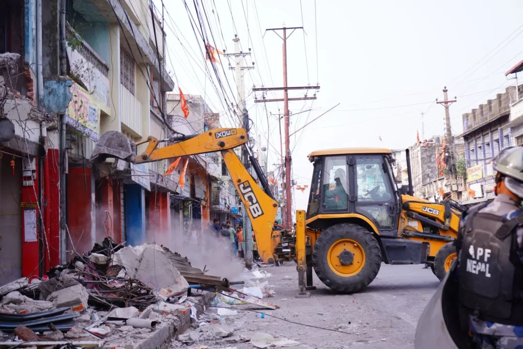 वीरगन्जमा अतिक्रमित संरचनामा चल्यो डोजर, १२ सय घरटहरा भत्काइँदै
