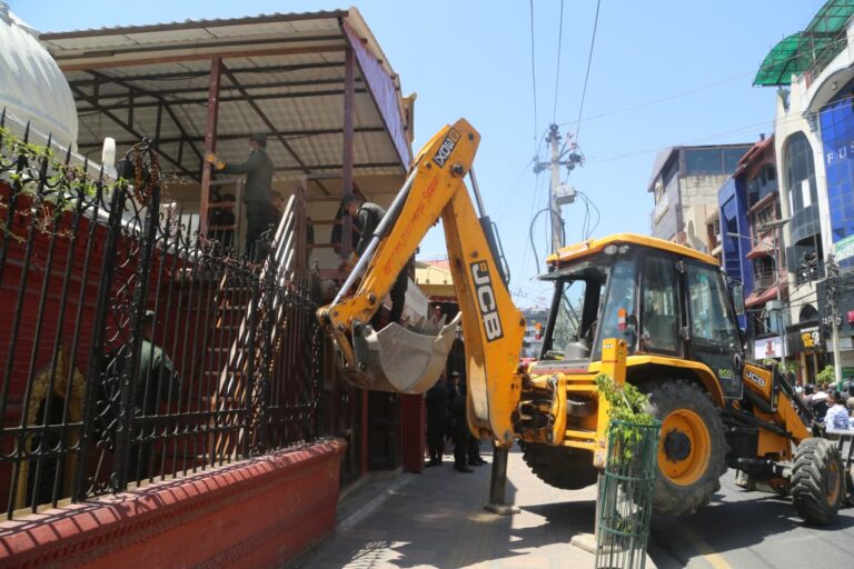 ठमेलको त्रिदेवी मन्दिरमा बनेको अनाधिकृत संरचना महानगरले भत्कायो