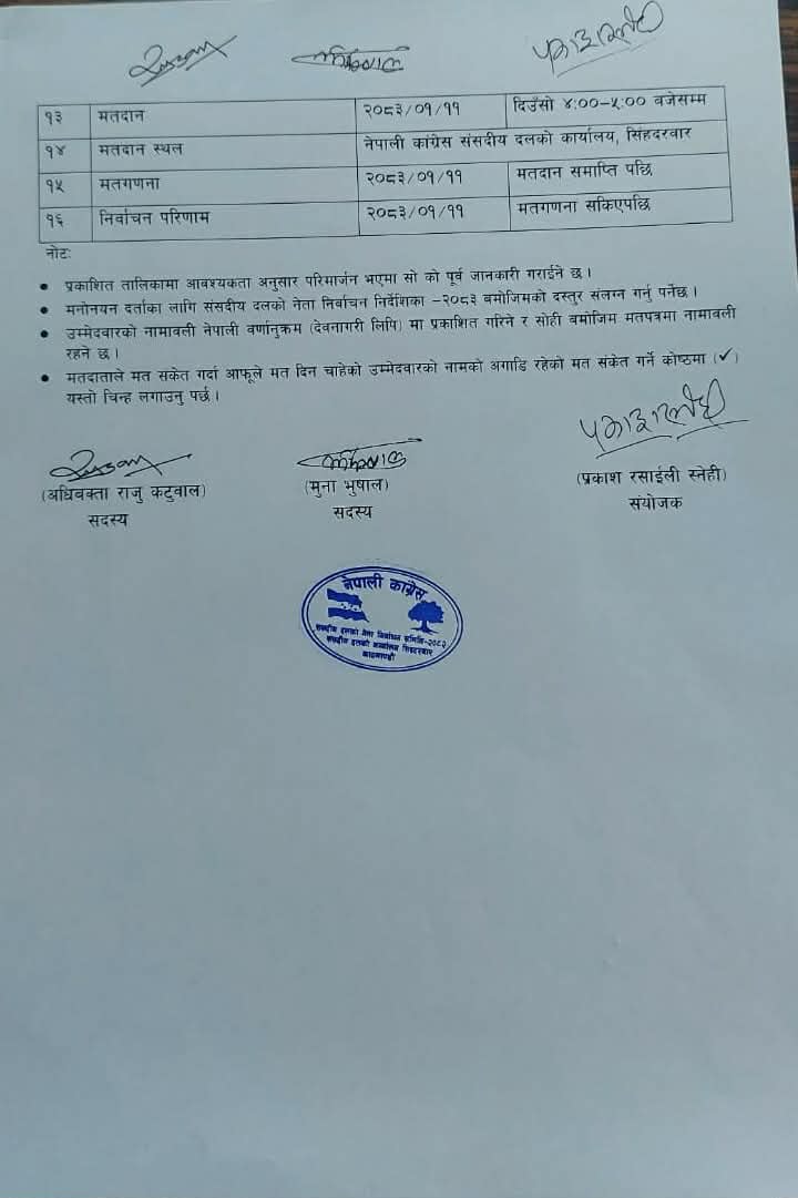 कांग्रेस संसदीय दलको नेता चयन आज, यस्तो छ निर्वाचन कार्यतालिका