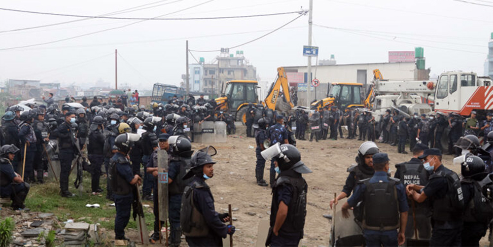 आज बिहानैदेखि बस्तीमा भक्तपुरबाट खटिएका एक हजार ३०० नेपाल प्रहरी र ६०० सशस्त्र प्रहरी परिचालन गरेर संरचना भत्काउन सुरु गरिएको जिल्ला प्रहरी परिसरका प्रमुख एवं प्रहरी उपरीक्षक सूर्यबहादुर खड्काले जानकारी दिए ।