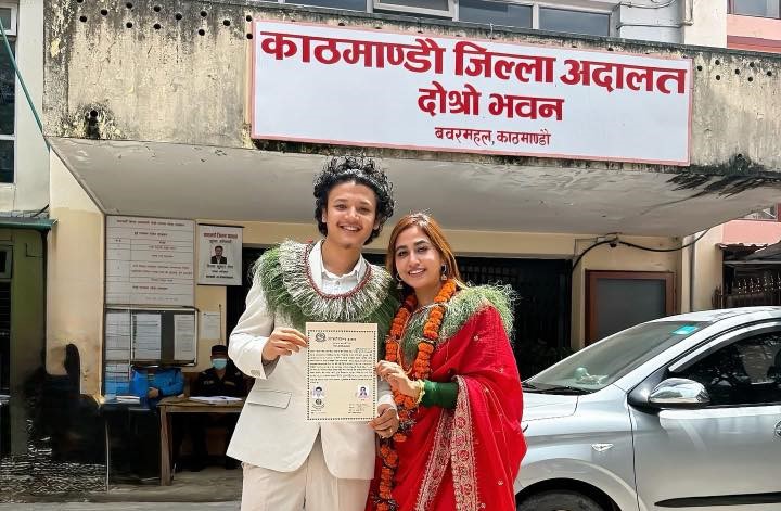 काठमाडौं- सामाजिक सञ्जाल टिकटकबाट चर्चामा आएका आयुष सिंह र एलिजे जमालीले काठमाडौं जिल्ला अदालतमा कानूनी रूपमा विवाह गरेका छन्। — विस्तृतमा