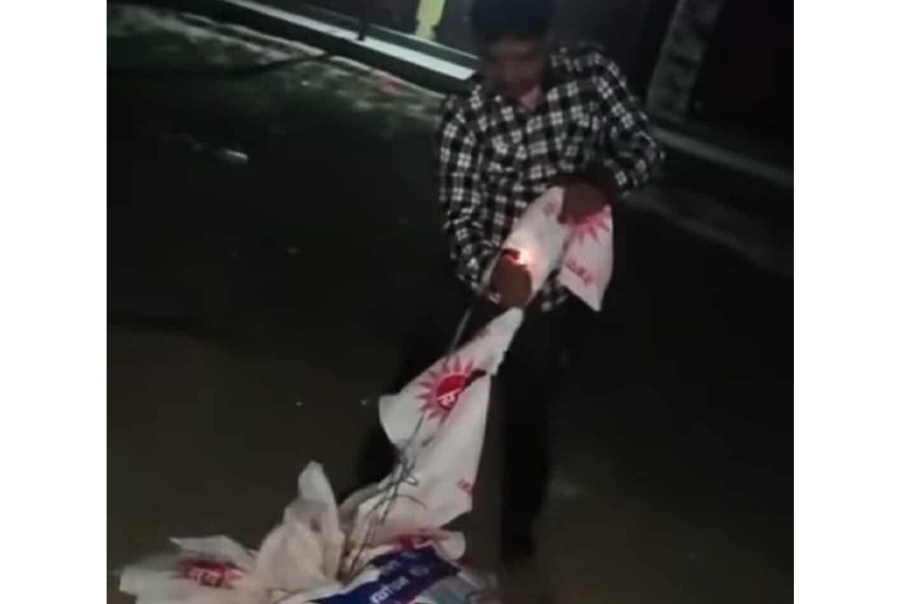 सप्तरी – सप्तरी निर्वाचन क्षेत्र नम्बर–२ अन्तर्गत महदेवा गाउँपालिका–५ भगवतपुर चोकमा नेकपा एमालेको चुनावी प्रचारका लागि डोरीमा बाँधेर झुण्ड्याइएको झण्डा — विस्तृतमा