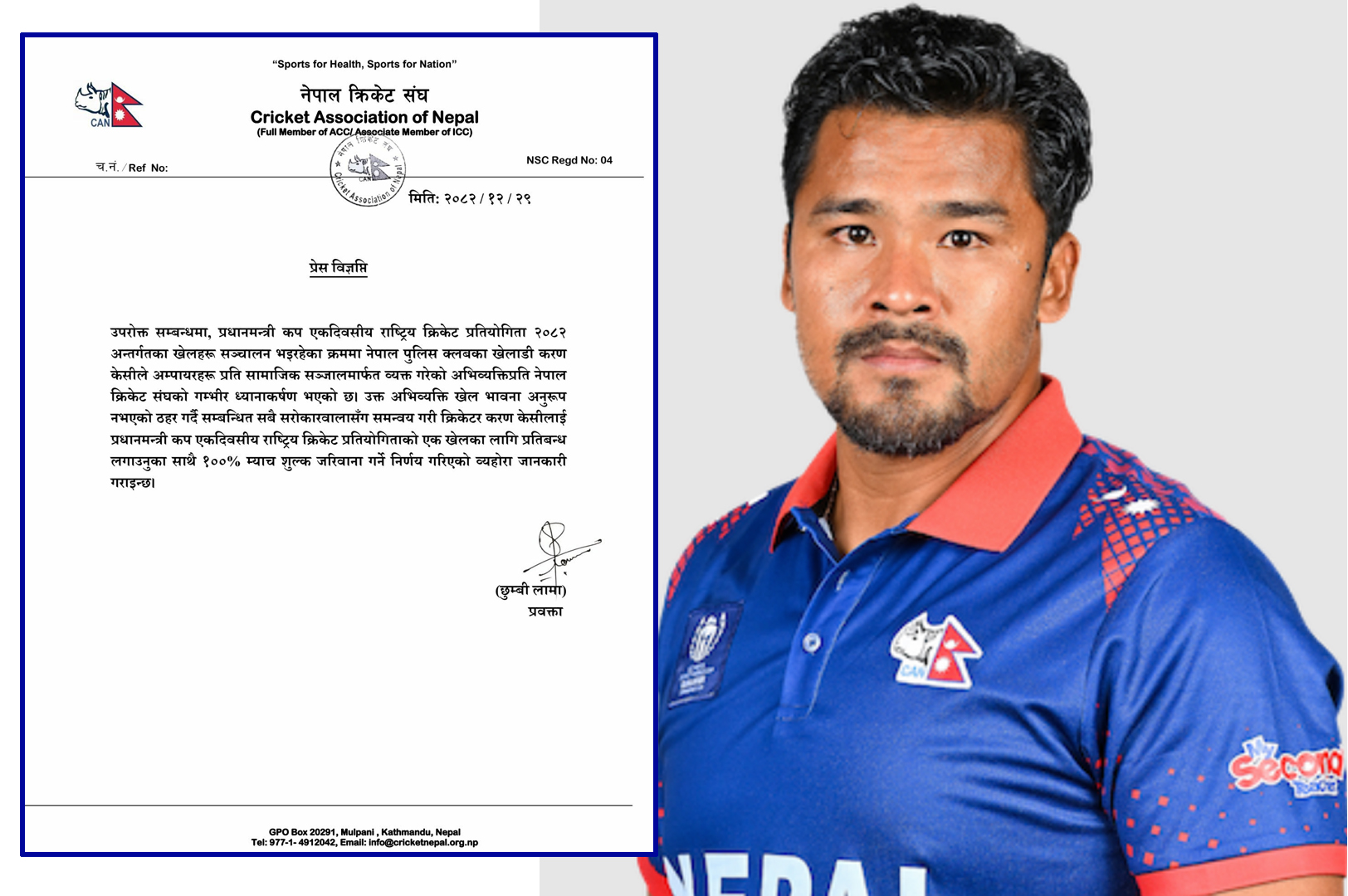 काठमाडौं – क्रिकेटर करण केसी कारबाहीमा परेका छन् । विवादित स्टाटसका विषयमा करणलाई नेपाल क्रिकेट संघ (क्यान) ले एक — विस्तृतमा